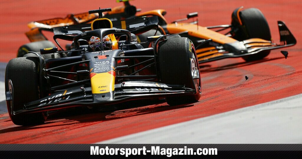 Max Verstappen and Lando Norris crash on lap 64 in the Austrian Formula 1 GP. The…