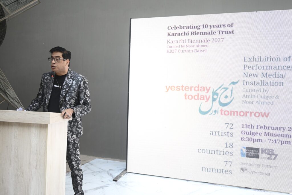 KARACHI: The Karachi Biennale Trust KB27 was unveiled at a press conference on February 13, 2026, at the Gulgee Museum. The event celebrated the Trust’s tenth anniversary and introduced the upcoming Biennale, scheduled for January 16–31, 2027. Curator Noor Ahmed will lead the edition under the theme “Kal — Yesterday/Tomorrow.”